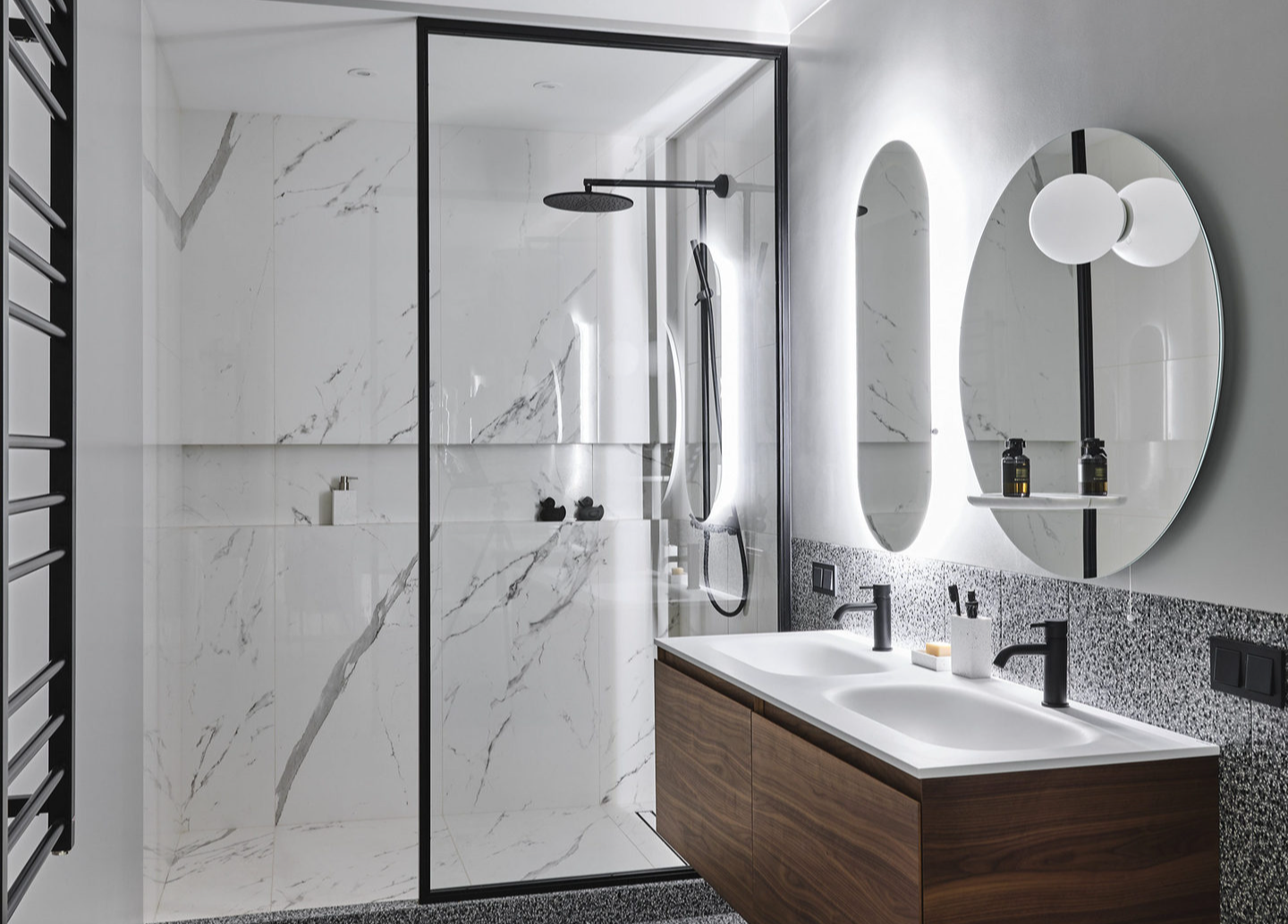 Перегородка в ванной — идеальная альтернатива для тех, кто не любит вешать шторку. Это стильная и прочная конструкция, которая позволяет предотвратить попадание воды за пределы душа и облагородить ванную комнату.